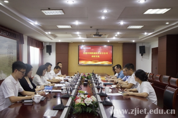 8月20日上午,中国联通杭州市分公司总经理胡晓一行来访学校。学校党委书记劳赐铭,副校长林锋,组织部、商务智能学院、产学研合作中心相关负责人参加交流。
