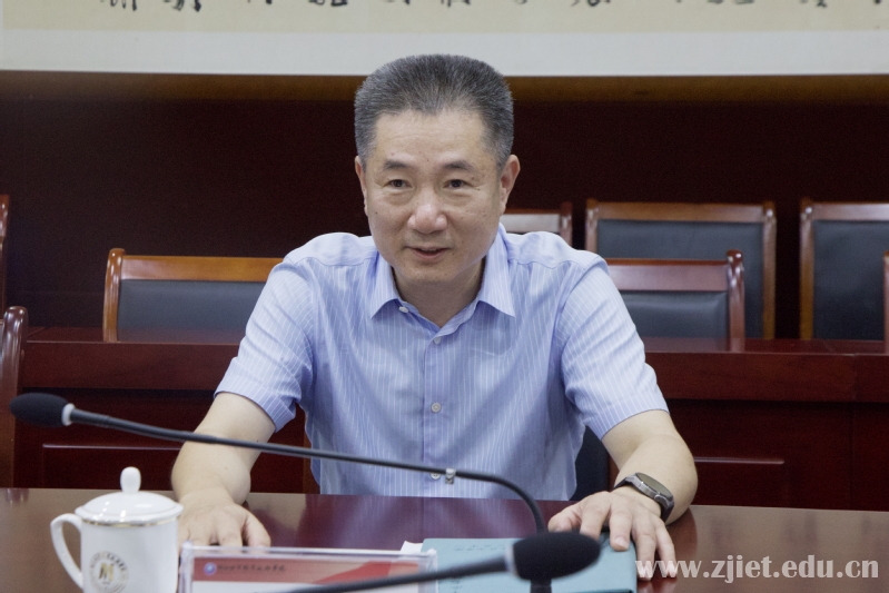 劳赐铭首先对中国联通杭州市分公司总经理胡晓一行表示热烈欢迎,并详细介绍了学校的基本情况。他指出,近年来学校锚定职业教育高质量发展目标,积极开展教育教学改革,培养适应区域经济社会发展的高技能人才,尤其是面对新一轮数字化浪潮,加快产教融合、校企合作迭代升级,致力于推动职业教育数字化转型,希望未来双方共同搭建多跨协同的共建共享平台,积极探索新一代人工智能技术融入人才培养全过程的实践路径。